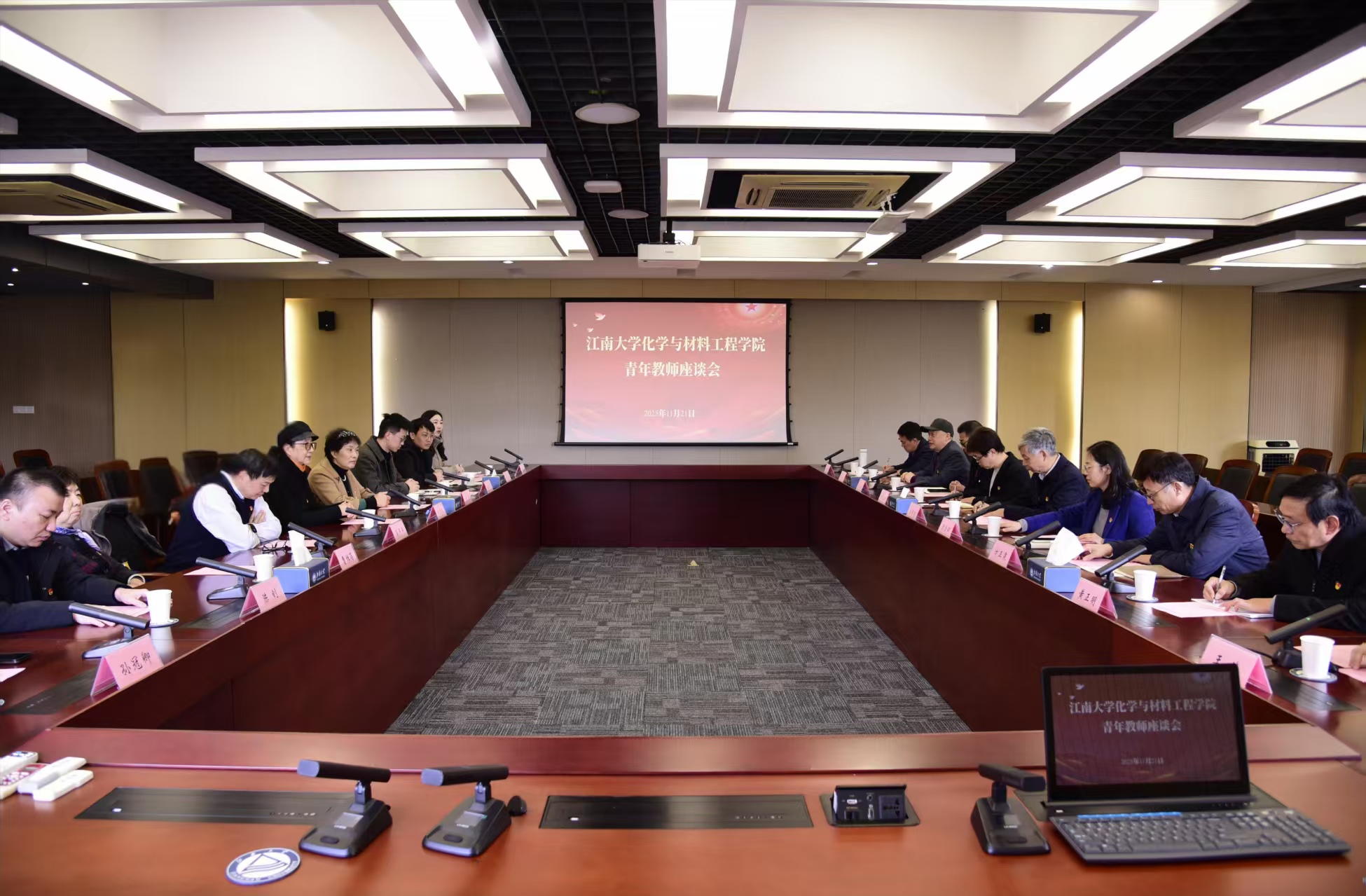 11月21日下午,化学与材料工程学院在行政楼B307召开青年教师座谈会。校关工委常务副主任娄国栋、党委教师工作部部长方正泉、离退休党委书记兼工作处处长张才兴、化学与材料工程学院党委书记周雪晖、工会副处级干部许南惠,学校与学院刘玉、刘晓亚、蒋平平、曹维蓓关工委老同志以及青年教师代表等共同参加。会议由学院副院长、关工委副主任王靖主持。