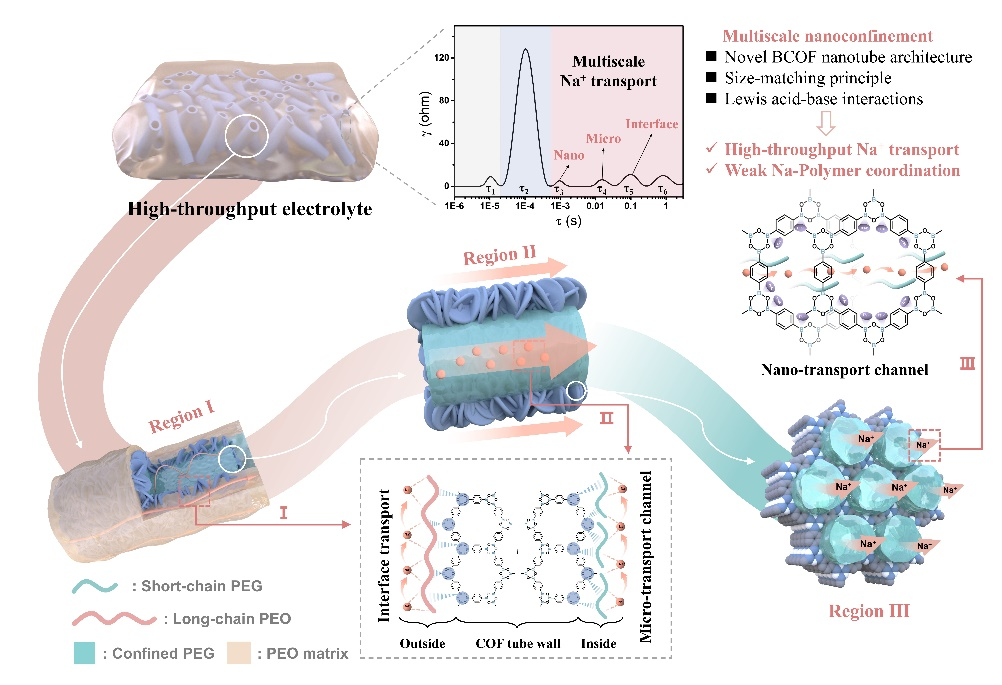 快离子导体多尺度纳米限域实现高性能聚合物电解质示意图